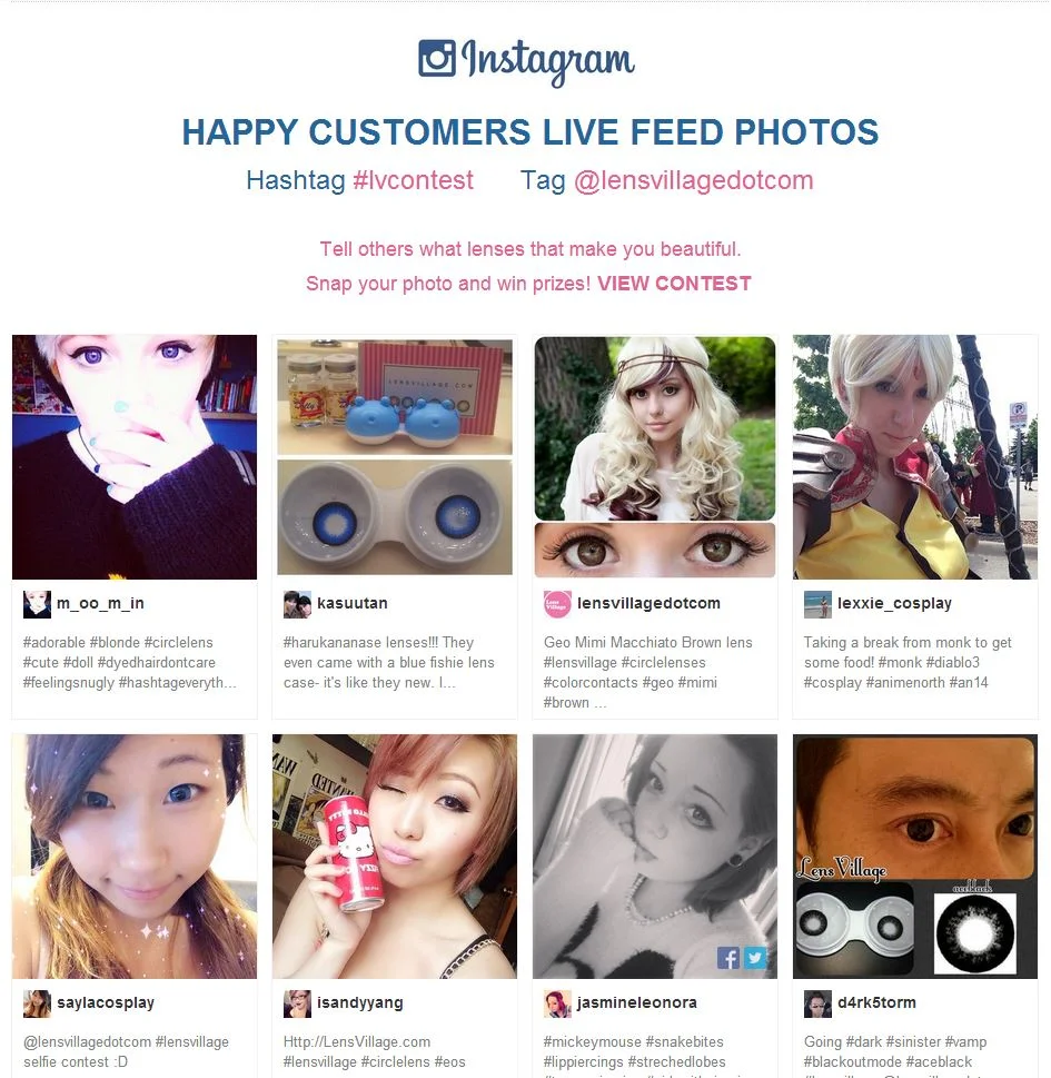 1. Each month, Lens Village gives prizes away for the most liked and most unique selfies uploaded to Instagram with its unique hashtag, and @mentioning the brand name.