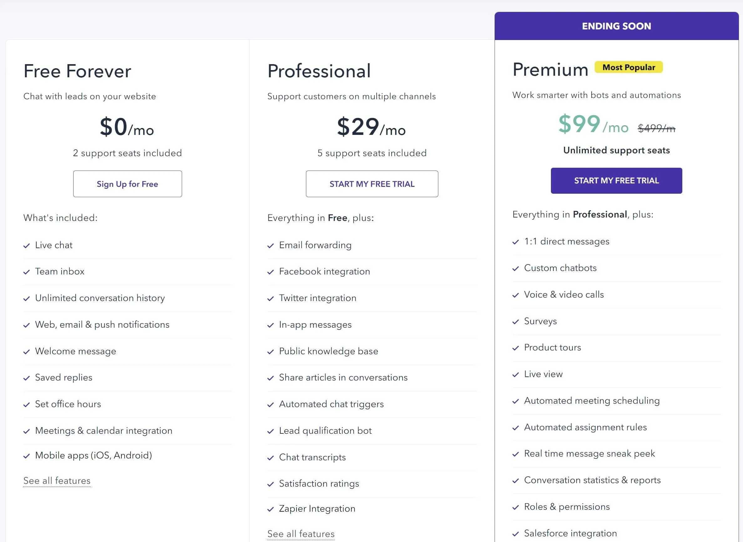 | Gist | Live chat, Email marketing, Knowledge base | Excellent for customer engagement, Good email marketing features | Steeper learning curve, Customer support could be better | $29 | 21 days |