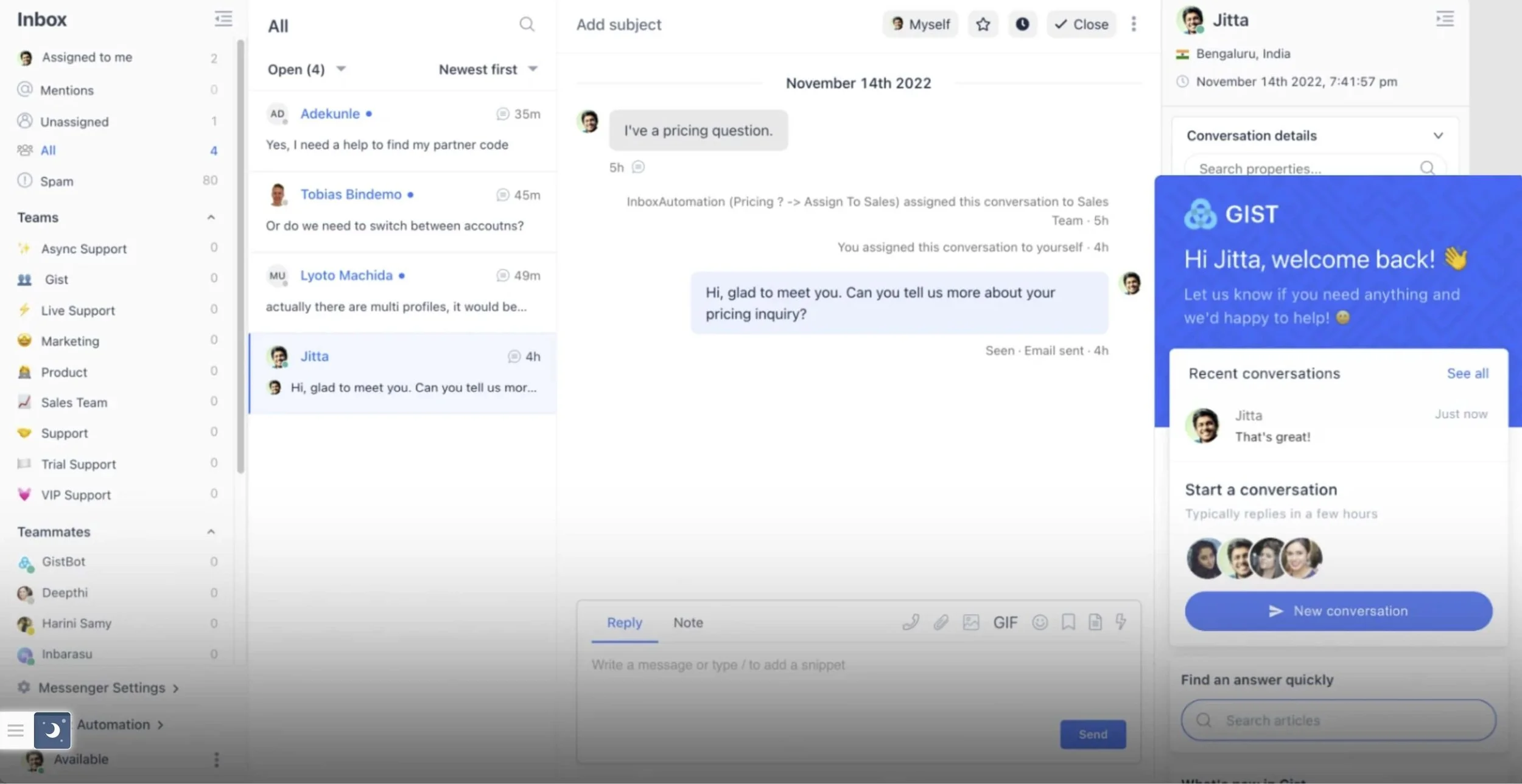 Live Chat: With Gist Messenger, you can chat with your customers whenever, wherever, fostering those long-lasting relationships. Don't fret about saving the history, Gist has your back.