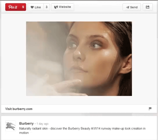 /Pinterest has supported animated GIFs for a while now, but not many brands are really taking advantage of them as they could. One company who that cannot be applied to is Burberry. It has used animated GIFs in its online marketing for years, and its targets now include Pinterest.