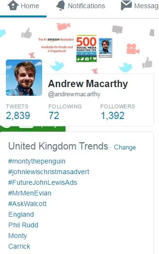 - The top three Twitter trends in the UK during the ad's first 24 hours online were #MontythePenguin, with 94,728 mentions by 8am on Friday, #JohnLewisChristmasAdvert (11,528) and #FutureJohnLewisAds (4,407). The words John Lewis have been tweeted 98,510 times, according to the social marketing platform Spredfast.