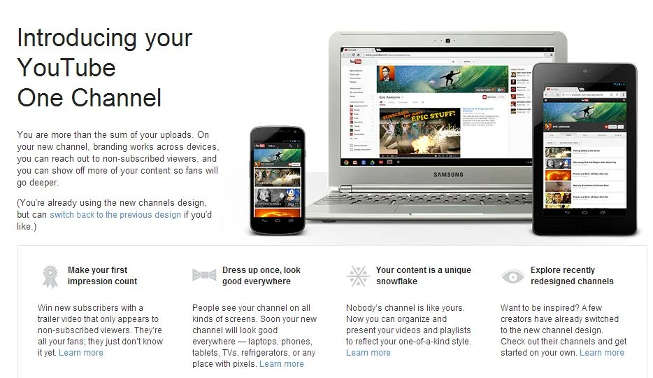 To be ready before the automatic switchover (and make use of the next four pointers), opt in to the YouTube One Channel layout now by visiting http://www.youtube.com/onechannel. Have a read through the overview provided if you wish, bid farewell to your old channel layout one last time, then hit the button at the bottom of the page to upgrade.