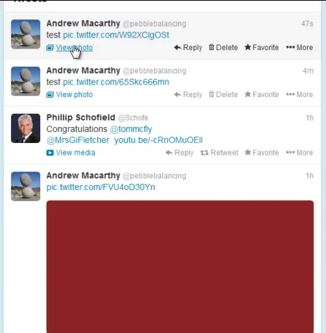Following the update, a portion of the uploaded image or Vine video is visible in the feed. Users can either click on the media to see it in a pop-up window, or click the Expand link, upon which the full image or video will be unveiled, as above.