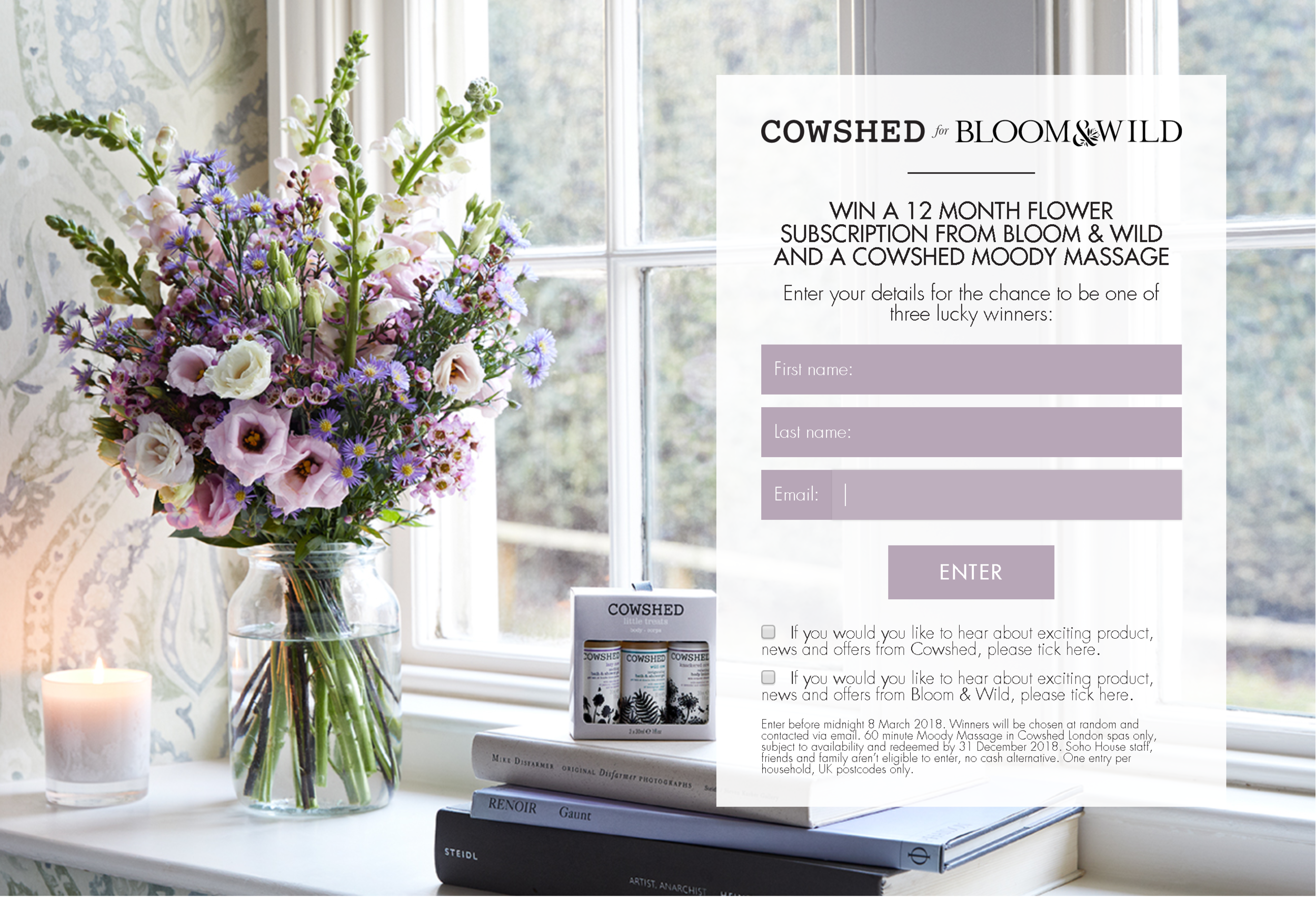 The link (shortened and trackable via bit.ly), leads to a simple entry form asking for name and email address. There's also tick-box options for people to sign up to each company's mailing lists - a smart and subtle way to drive sign-ups.