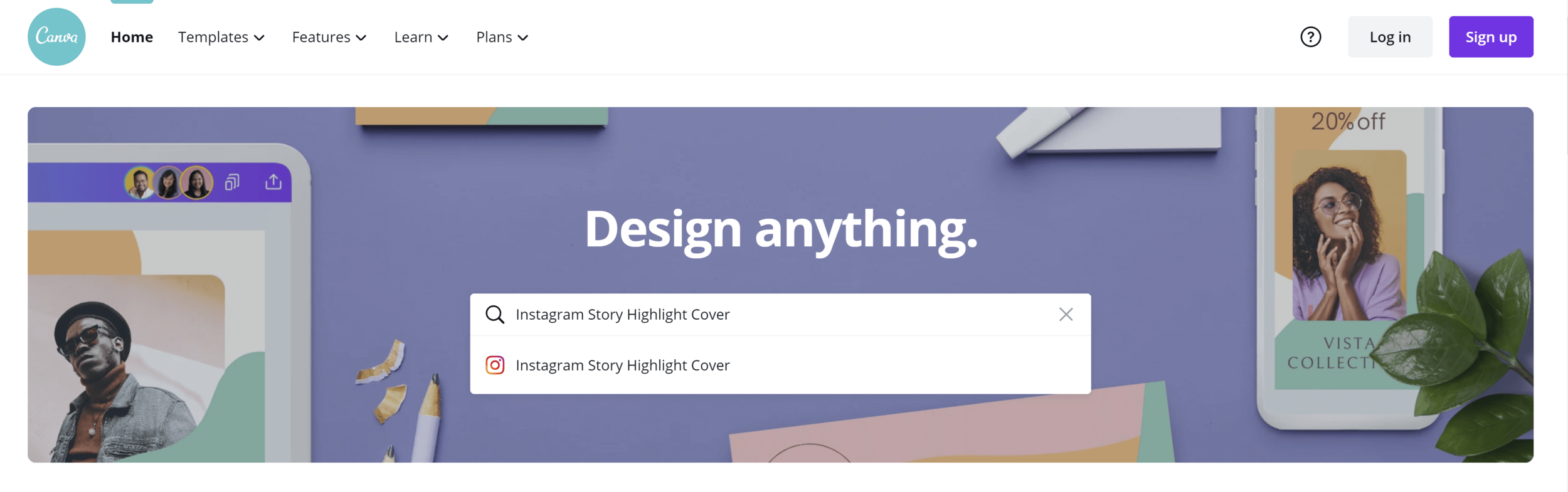 Canva is a free online design tool with dozens of template options for all kinds of social media posts, including Instagram Highlight covers.