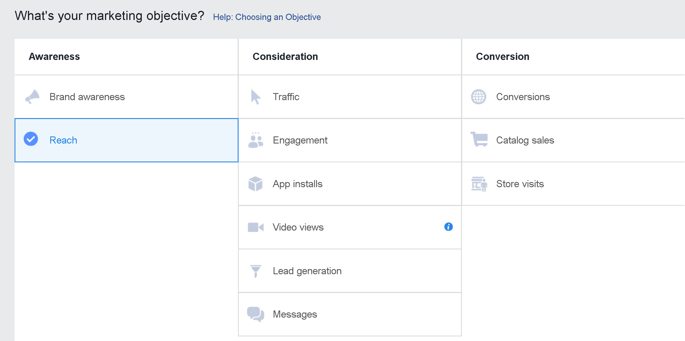 To enable the option to use Instagram Stories ads, choose either the Reach, Video Views, Traffic, Conversions, or App Installs objective.