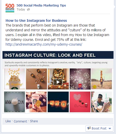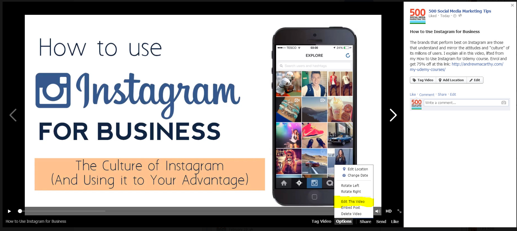 1. Your video will look like this on your Facebook Page or Timeline. Click on it to open it up in the full viewer.