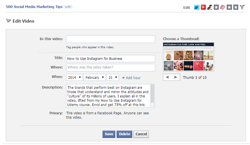 When you upload a video to Facebook, after processing, a notification tells you that it is ready to view and says you can also change the video thumbnail. If you take notice of this straight away, you can edit the thumbnail in a pop-up window. If however, you want to edit the thumbnail after that point, the process isn't so obvious. Let's take a look...