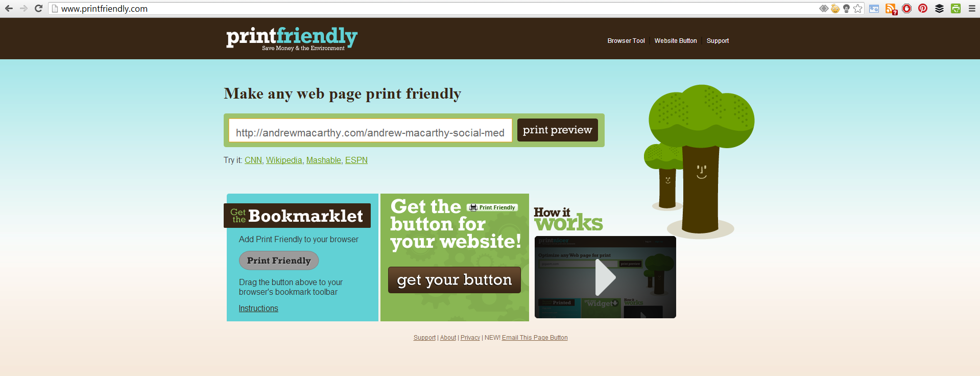 To convert your blog post into a PDF, I recommend the tool over at www.printfriendly.com. Once there, paste your blog post's URL into the bar at the top of the site and click "Print Preview." Alternatively - and this is the way I do it - install the PrintFriendly browser extension and simply click it when you're on the page of the blog post that you want to convert. I prefer the latter method as sometimes the former does not pull in the blog's images.