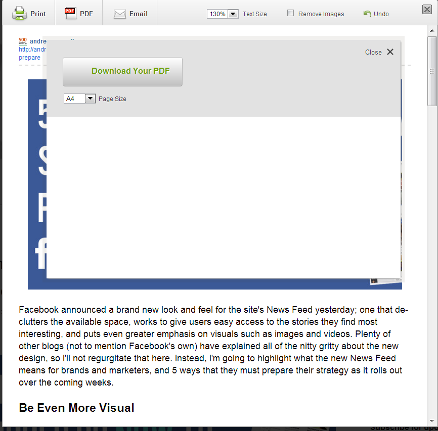 PrintFriendly will spend a few seconds generating your PDF. When it's done, choose the A4 Page Size option and click the button to download it ready for uploading to Slideshare.