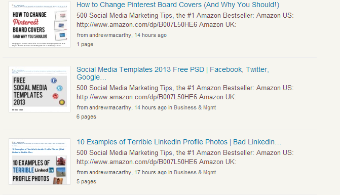 Here's an example of how your presentations will display in Slideshare search results. As you can see the thumbnail that appears is the image that appeared at the top of my blog post.  If the top of your blog post is just text, then your thumbnail on Slideshare will be as well, which won't make it too visually appealing. I know it won't be possible for everyone, but if you are going to convert blog posts for Slideshare, having an image at the top of your blog post - even if temporarily while you convert to PDF - can make a huge difference.
