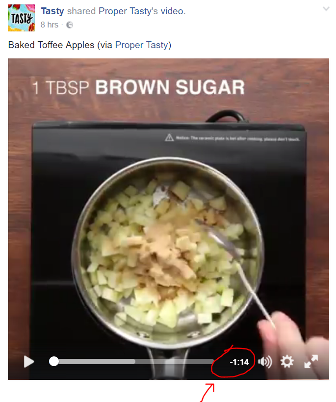 One of the key considerations for Tasty is shooting videos that can are captivating from the beginning, and easily understood without sound. These strategies take into account two fundamental features of videos in the Facebook News Feed: videos play automatically when a user scrolls onto them, and they are also muted unless the user turns on sound.