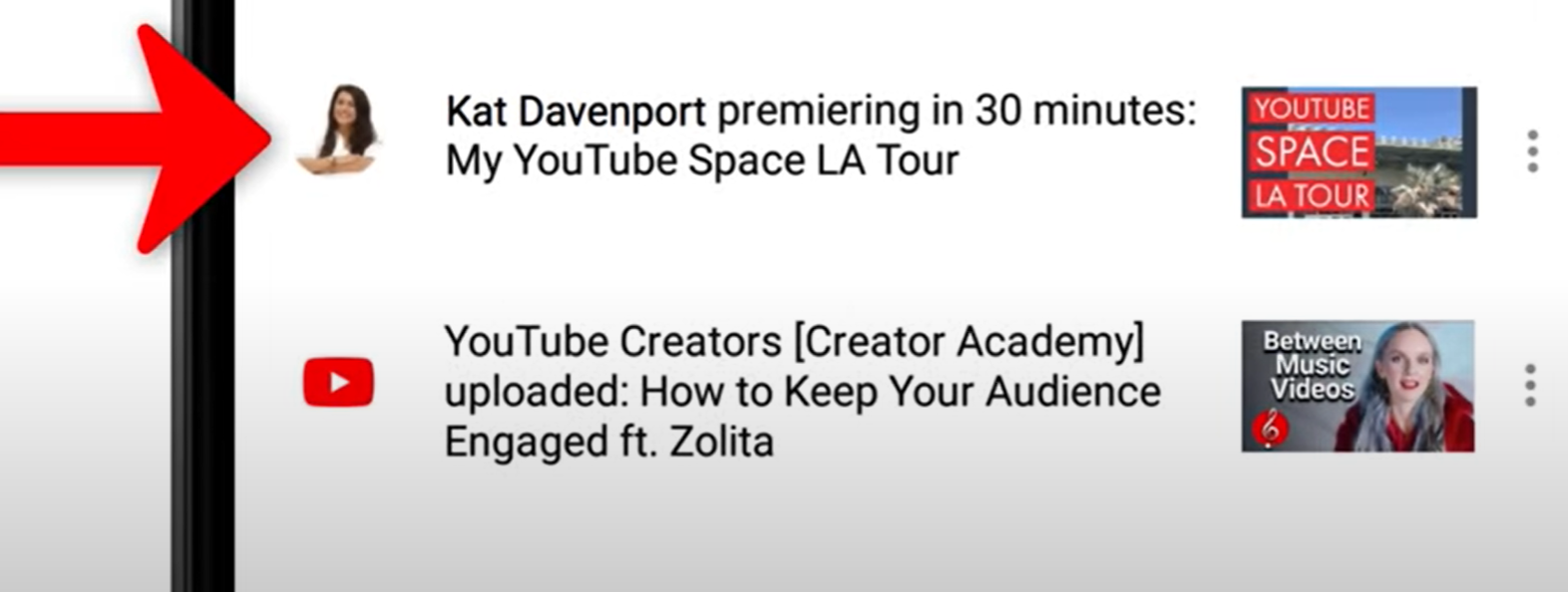 Those viewers who choose to get notifications will receive a tune-in notification around 30 minutes before the start of your video premieres. A second notification is sent just as it starts, letting viewers know the premiere is starting.