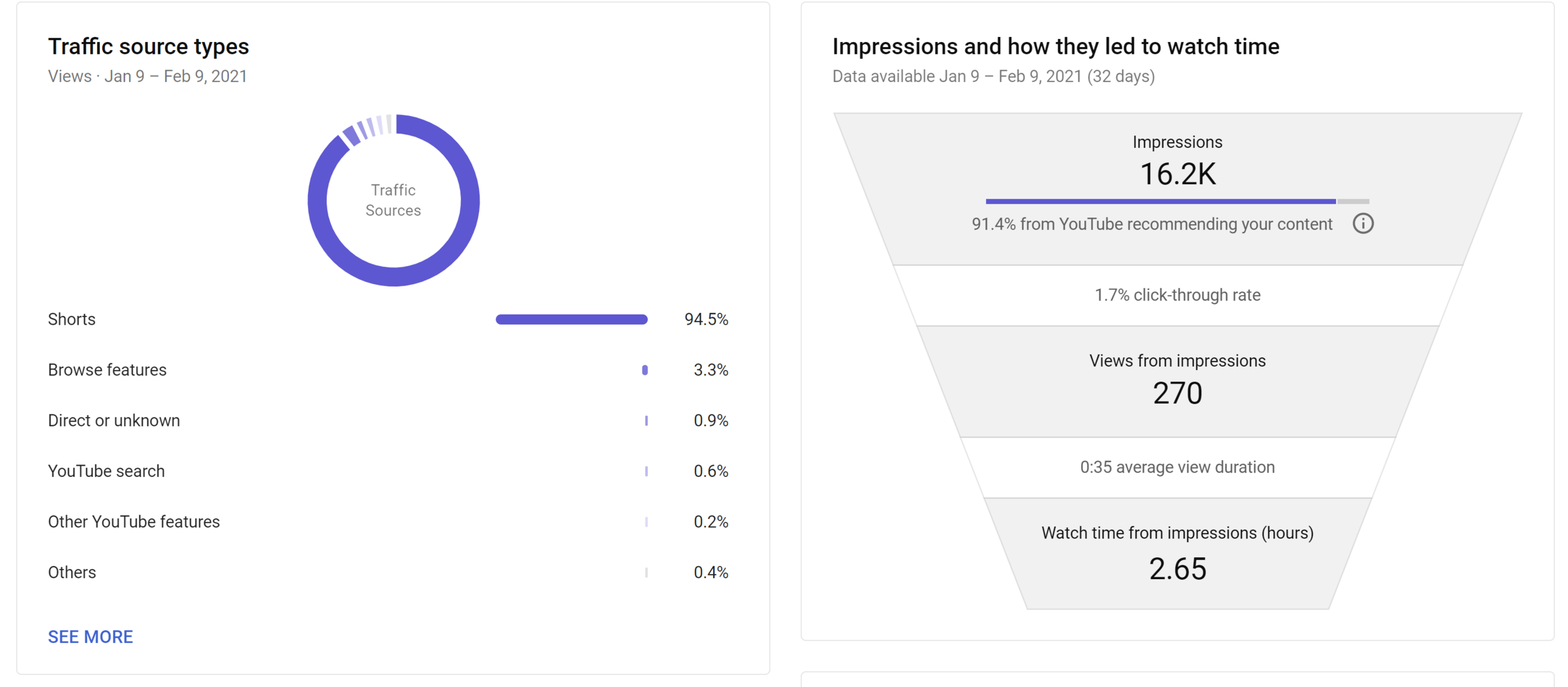 Let’s deep-dive into my YouTube Analytics to see what happened over the 30 days of posting shorts.