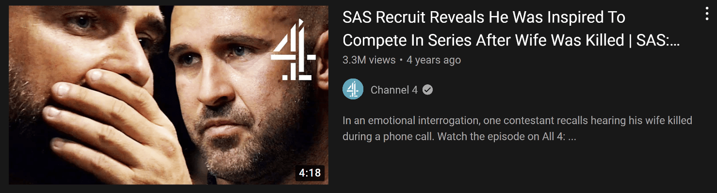 The sadness and shock on the faces of these two men contrasts with the black background to make the thumbnail stand out, and the title helps to provide context.