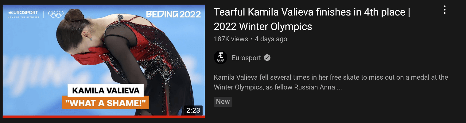 Here, we don’t see Kamila Valieva’s face, but we can tell from the hands over her face that she is despairing over her ice skating performance. We’ll have to watch to see what exactly happened to make her feel like that.