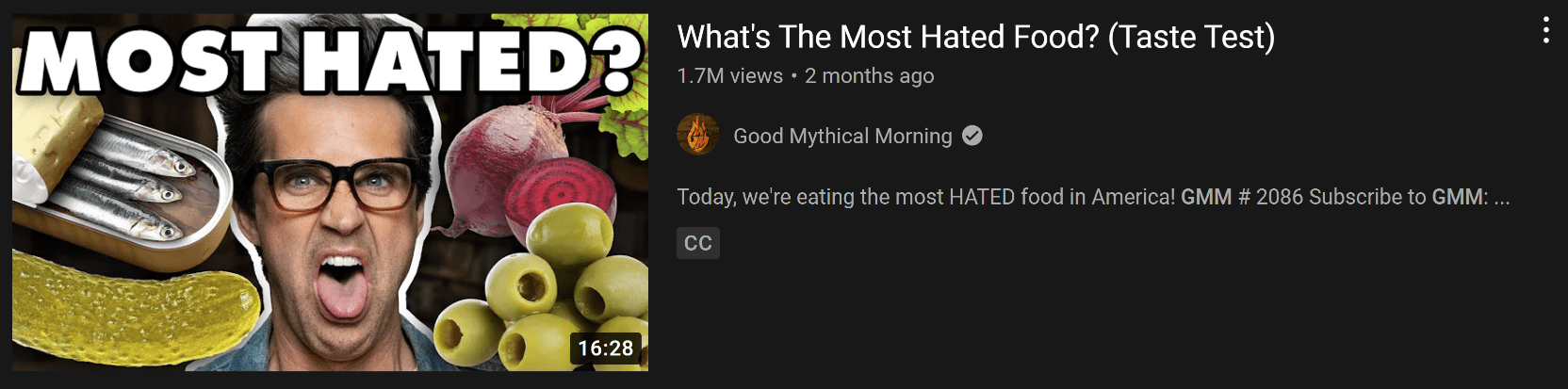 And we know that tasting foods people don’t like isn’t going to leave someone with the most joyous of expressions, but we know it’s not always going to be as dramatic as the thumbnail shows.